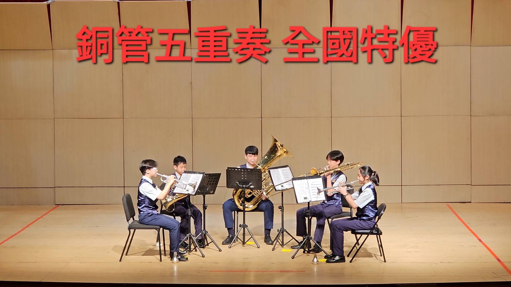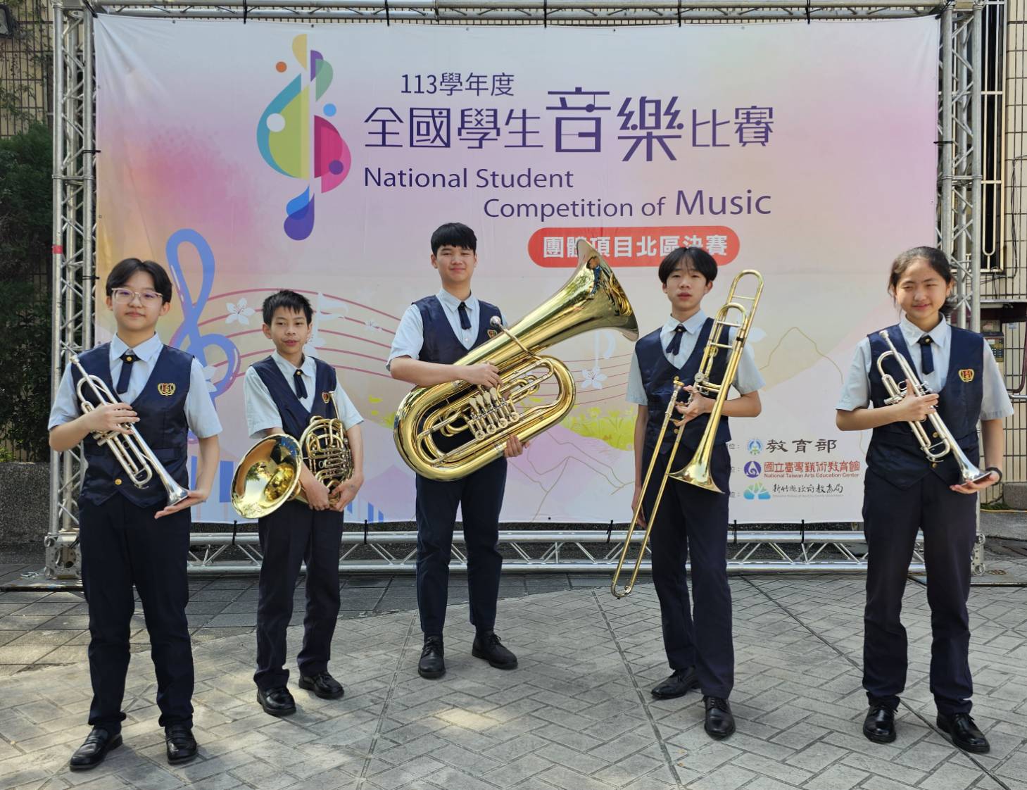 本校管樂團參加113學年度全國學生音樂比賽表現優異,室內樂合奏-銅管五重奏 榮獲全國特優