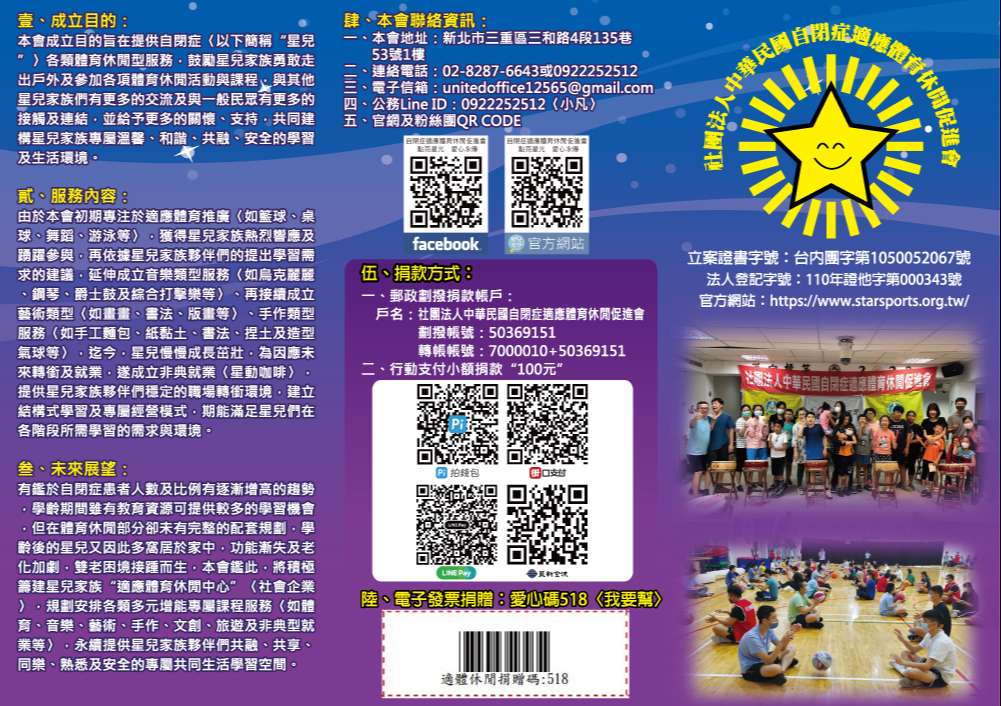 2、戶名:社團法人中華民國自閉症適應體育休閒促進會