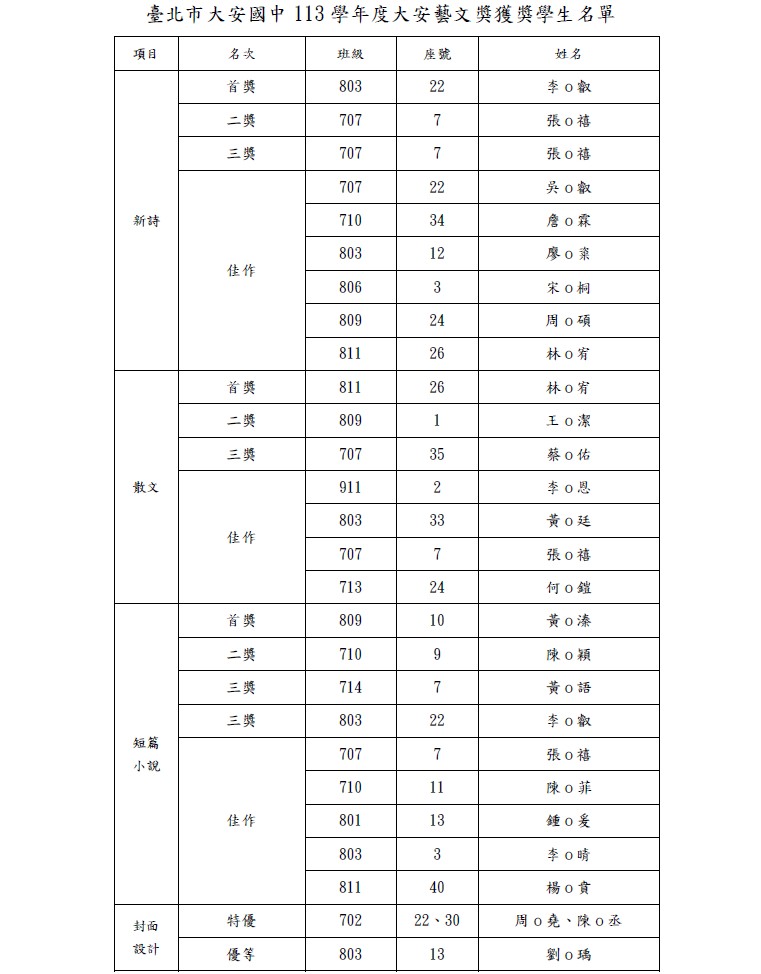 並感謝李佳真老師、郁雲龍老師、多淑珍老師、宋國華老師、黃詩涵老師、鄭宜欣老師協助評審等相關事宜。