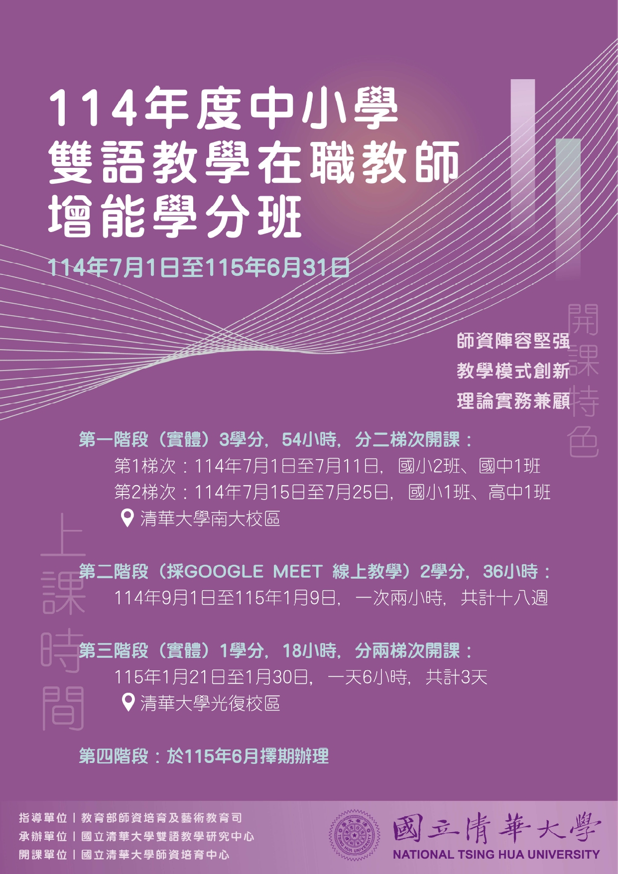 報名方法請至清大雙語教學研究中心臉書粉絲頁查閱(網 頁連結:https://tinyurl.com/bdep8jep),
