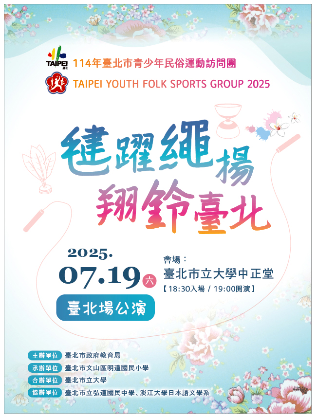 轉知本市114年青少年民俗運動訪問團辦理出國行前公演暨授旗典禮,鼓勵有興趣之親師生踴躍前往觀賞