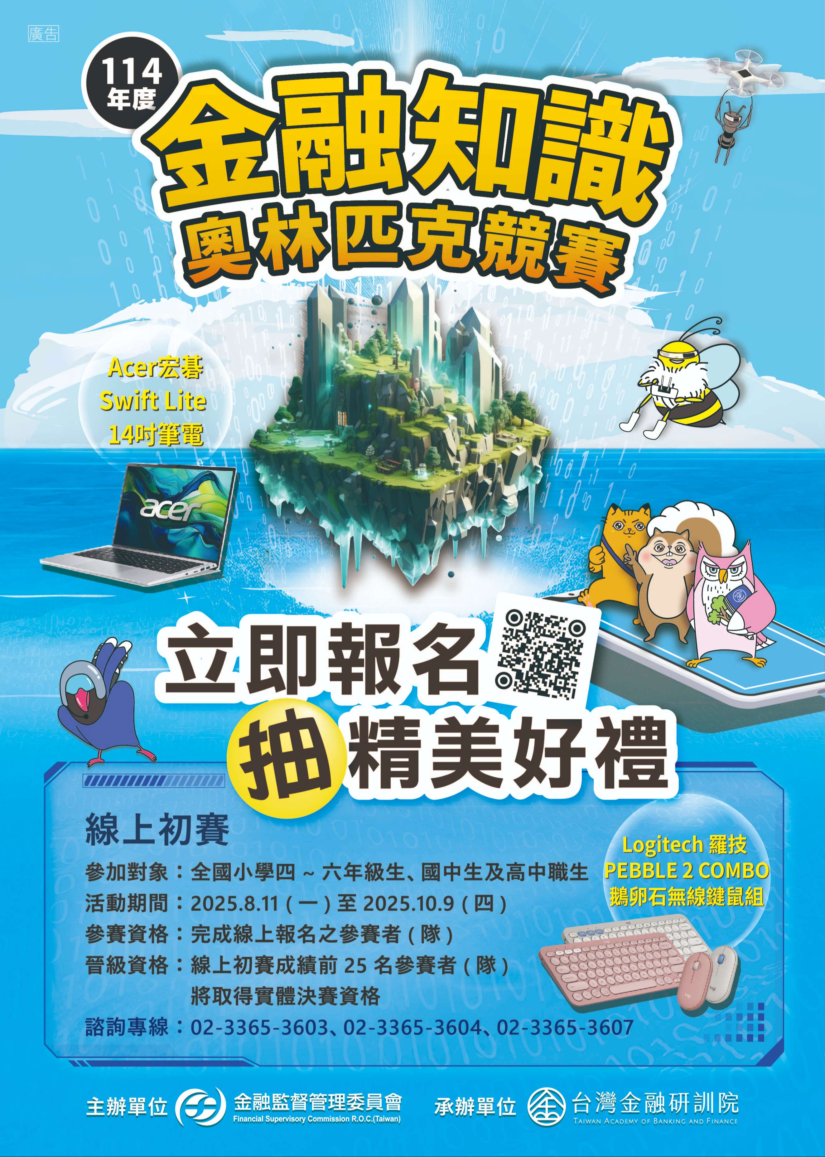 (一)國中及高中職組競賽: 1、參加對象:全國國中、高中職一至三年級學生。 2、線上初 賽期間:114年8月11日至10月9日。 3、活動方式:分為國中個 人組、國中團體組、高中 職個人組、高中職團體組,線上初賽 後擇優進入實體決賽。