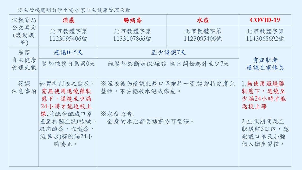若學生出現下列疾病,請盡速通知校方,並先上網填報相關資料,健康中心會盡速與家長聯繫,並依規定完成通報: