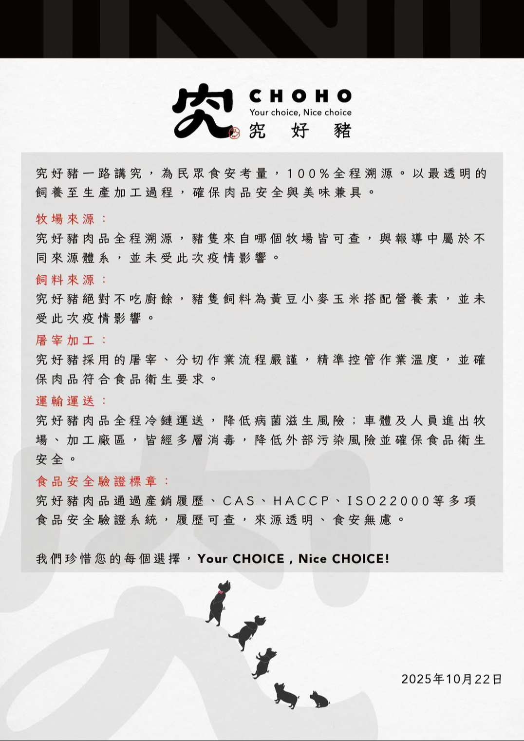 最後附上我們的豬肉好夥伴「祥圃-究好豬」聲明,再次感謝大家的理解與支持💪