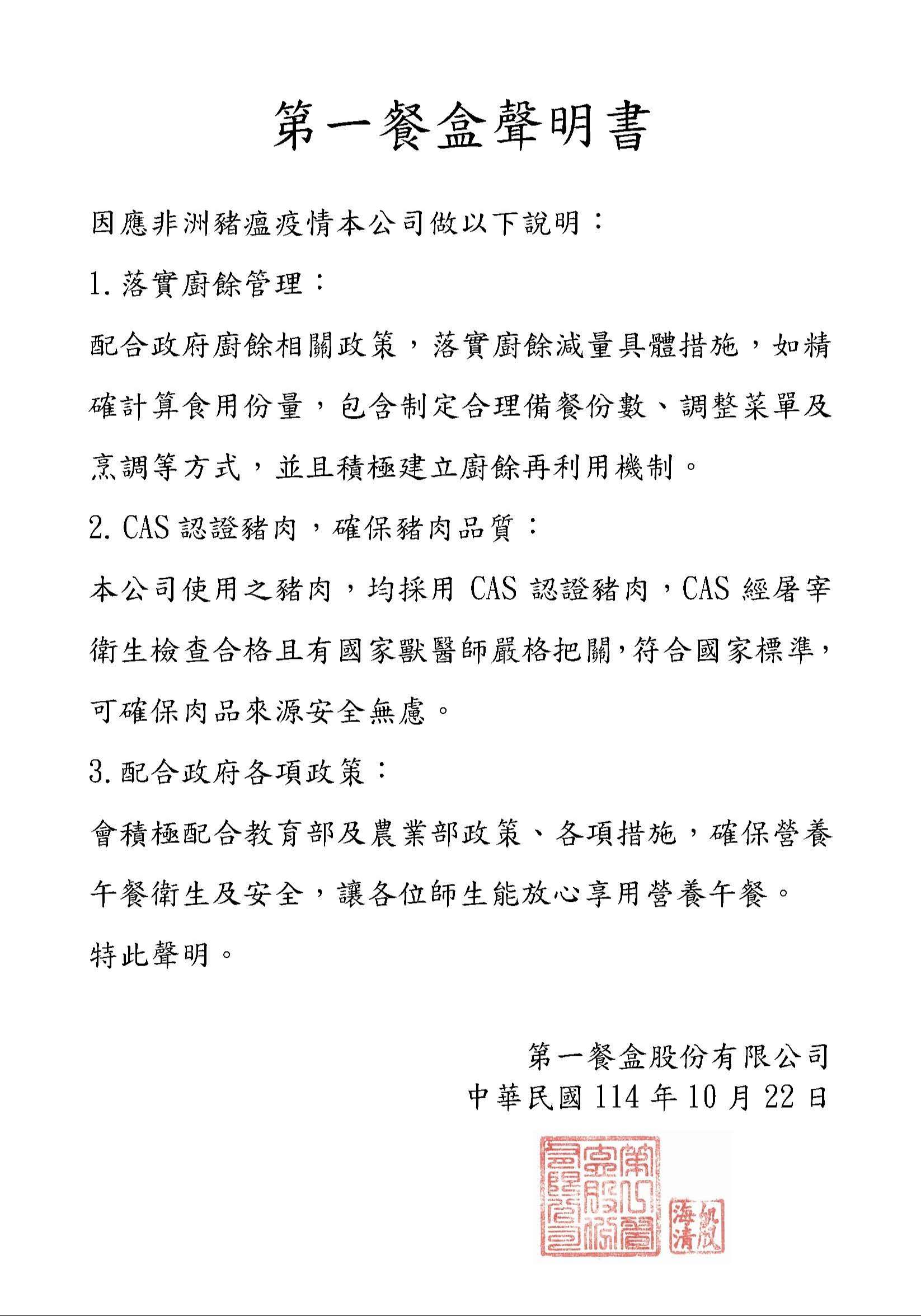 聲明書如附件請參閱。