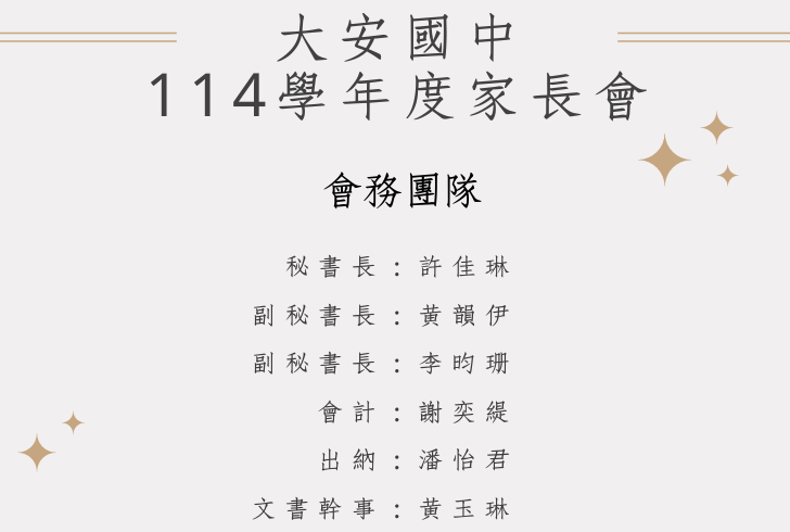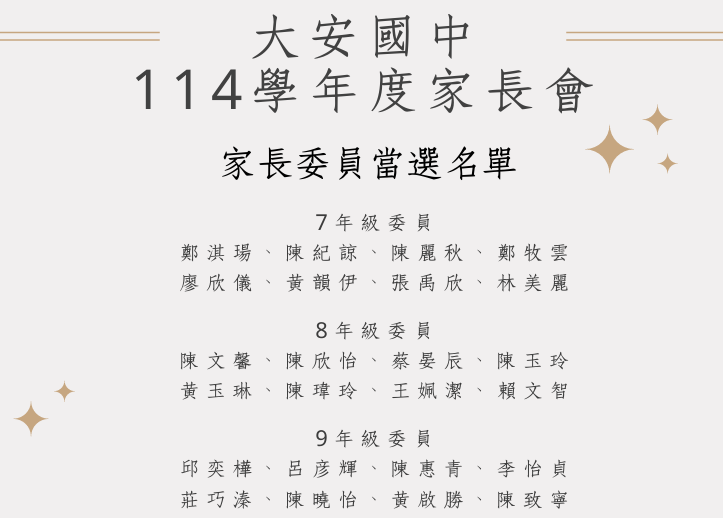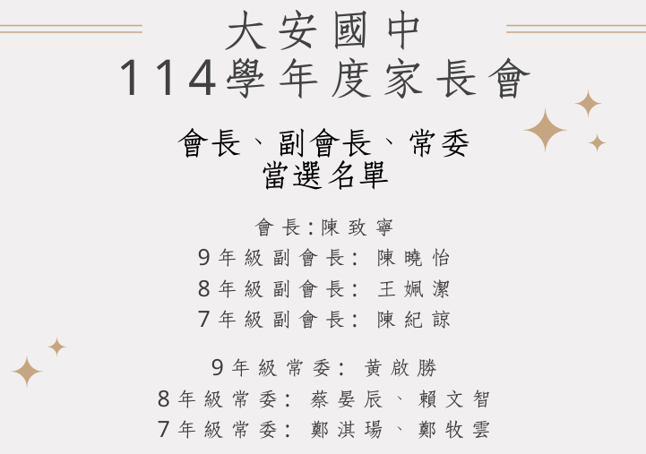 114學年度大安國中家長會團隊名單,恭喜當選委員及工作團隊!🎊🎉