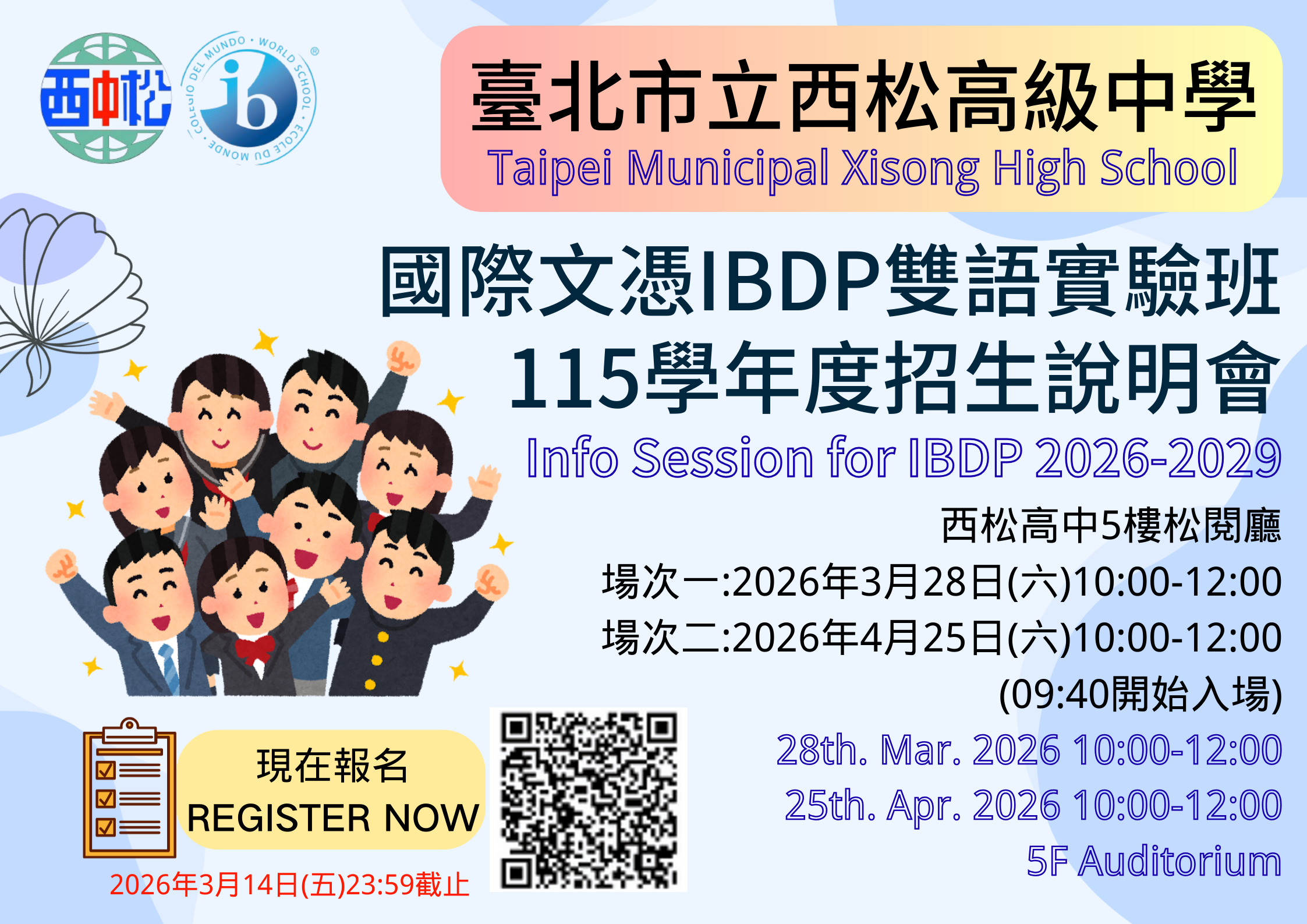 (五)歡迎關注本校國際文憑IBDP課程網站https://sites. google.com/ms2.hssh.tp.edu.tw/xisongibdp/?pli=1,